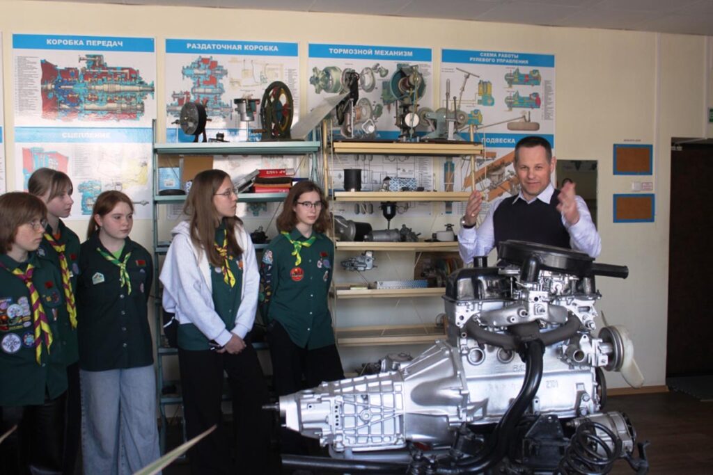 Председатель совета ГОС ДОСААФ Сергей Николаевич Шкутько, рассказал девчонкам, об истории школы, количестве подготовленных водителей для Вооруженных Сил и силового блока и народного хозяйства нашей страны. Ребята познакомились с системой обучения в автошколе, посетили действующую лабораторию по изучению узлов и механизмов автомобиля и принципах их ремонта.
