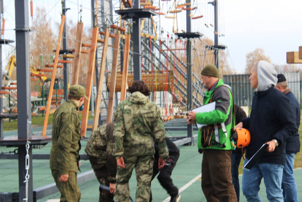 На участке №6 ребята разбирали и собирала автомат Калашникова АК-74, снаряжали магазины к нему. Тоже самое, выполняли и с пистолетом Макарова. Особо сложным заданием для всех команд, было преодоление элементов полосы препятствий и веревочного парка.