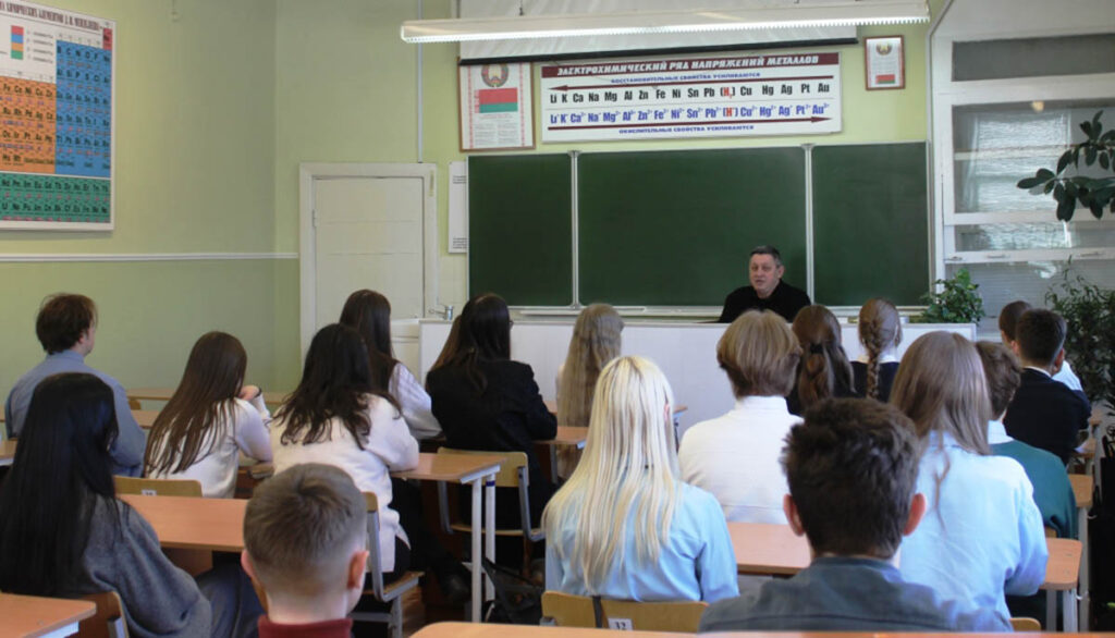 Накануне и после Дня памяти, в рамках проведения месячника военно-патриотической и спортивной работы, в учебных заведениях города Бреста, проходят встречи с ветеранами боевых действий. В ГУО СШ № 18 старшеклассники встретились с подполковником Авериным А.Ю., который проходил службу в составе ограниченного контингента в должности снайпера. Ветеран поделился с ребятами воспоминаниями о службе, дружбе, боевых выходах и организации быта и службы на территории далекой азиатской страны. Были показаны фото и видео презентации по теме афганских событий 1979-1989 годов.